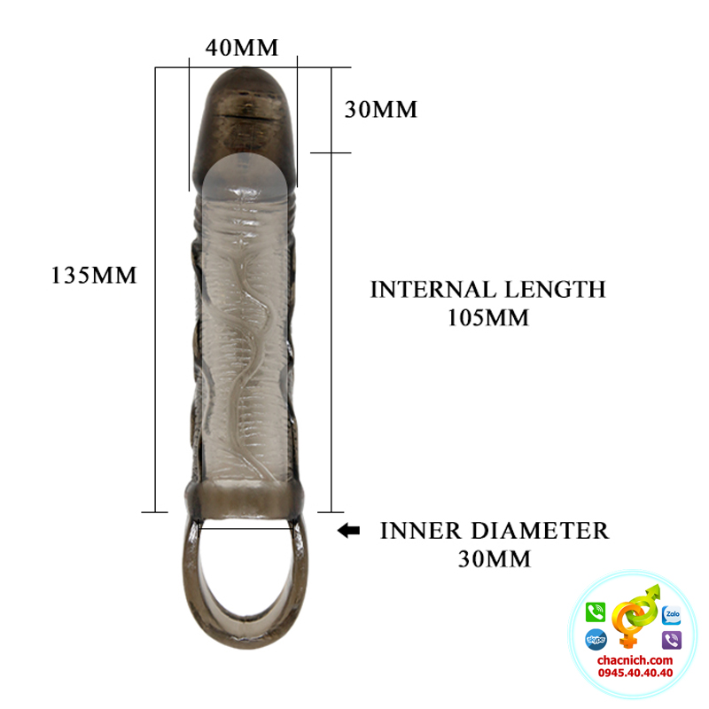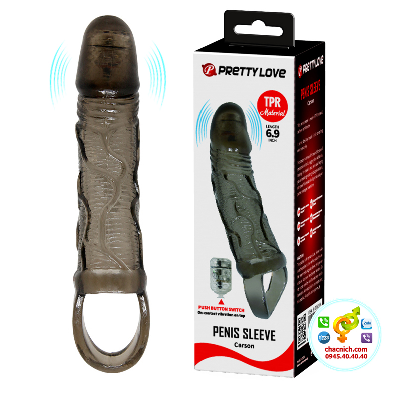 Bao cao su Silicon Prettylove Penis Sleeve Carson khi đeo vào dương vật sẽ đôn dài ra thêm 3cm, phần đầu có rung giúp kích thích khoái cảm sâu bên trong, thiết kế có dây đeo vào bìu nam giới, với thiết kế này bạn không phải lo bao bị tuột khi quan hệ.