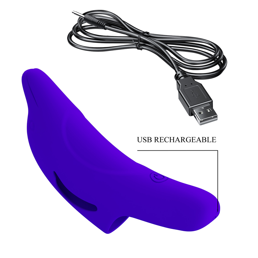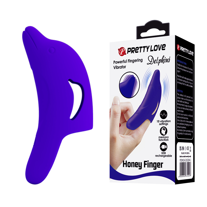 Máy rung đeo ngón tay Prettylove Delphini Honey Finger có 10 kiểu rung khác nhau, sản phẩm dùng để massage đa điểm G, rung động khá mạnh mẽ thiết kế vừa vặn để đeo đầu ngón tay, sử dụng pin sạc tiện dụng.