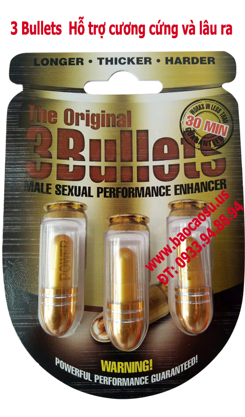 The Original 3 Bullets giúp phái mạnh tăng khả năng cương cứng, cương cứng hơn bình thường và giúp Nam giới quan hệ lâu hơn, chống xuất tinh sớm rất hiệu quả, Sản phẩm hàng đầu tại Mỹ.