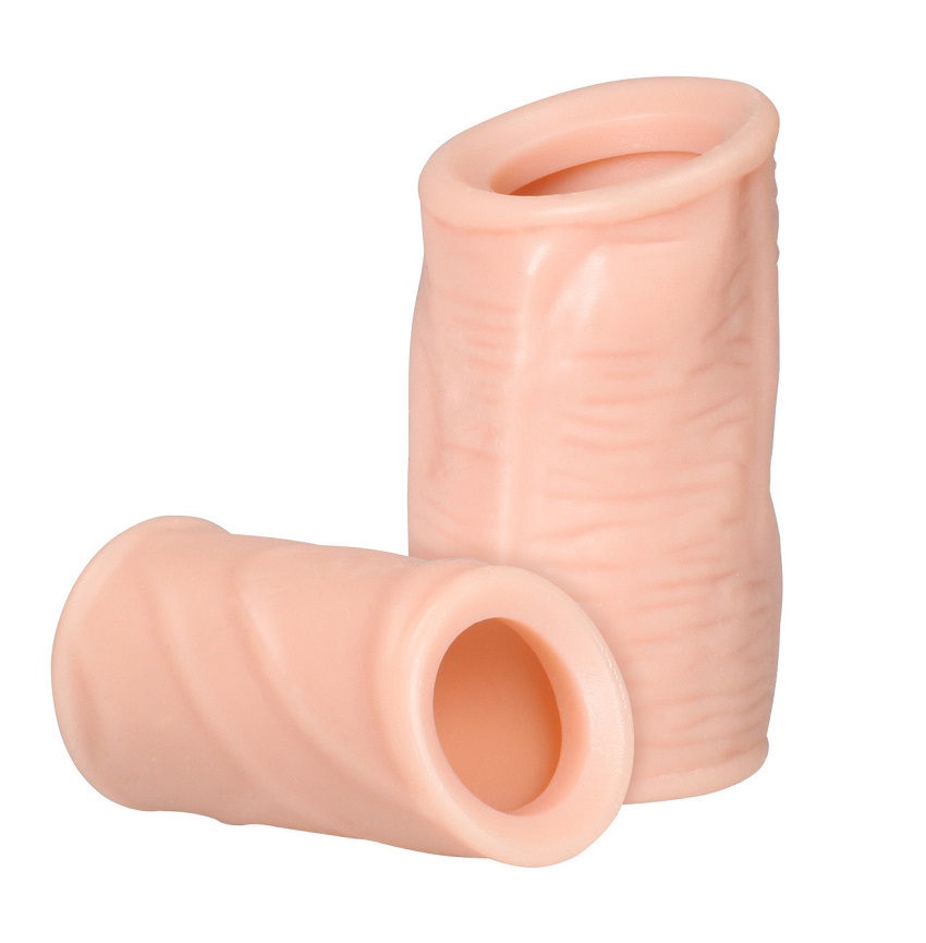 Khúc đôn Silicon màu da hở 2 đầu khi đeo dương vật sẽ hỗ trợ nam giới tăng kích thước, Silicon TPE siêu mềm co giãn tốt và bám rất chắc chắn.